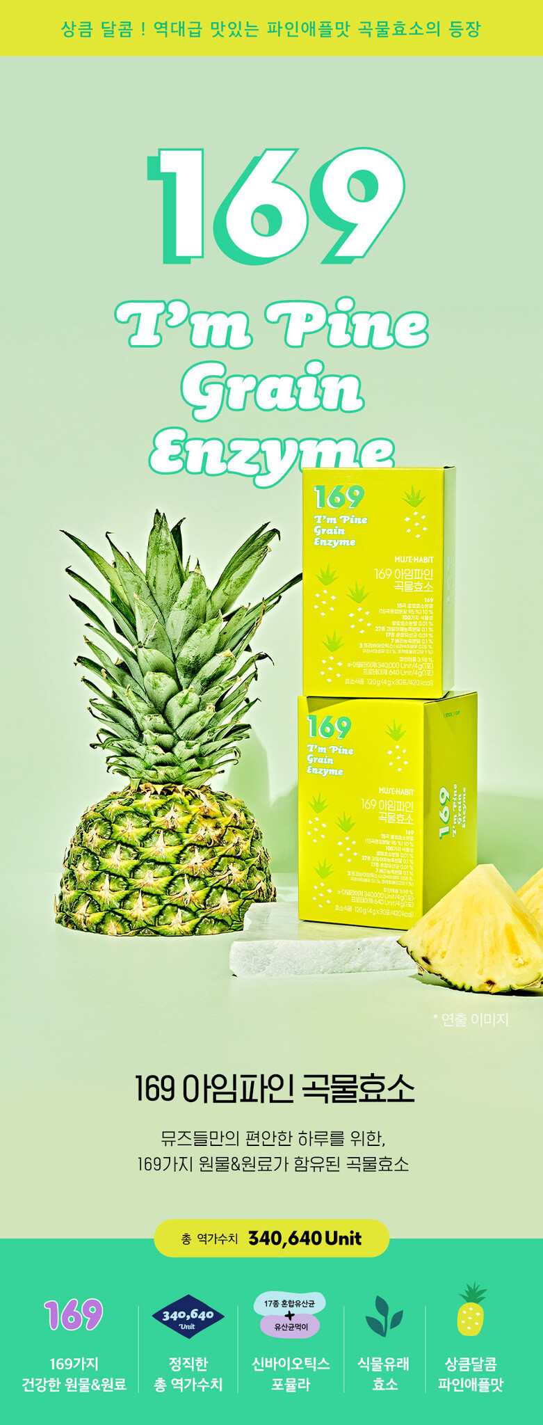 Experience the comfort of a healthy day with 169 natural ingredients and raw materials infused in every pack of 169 I'm Pine Grain Enzyme.